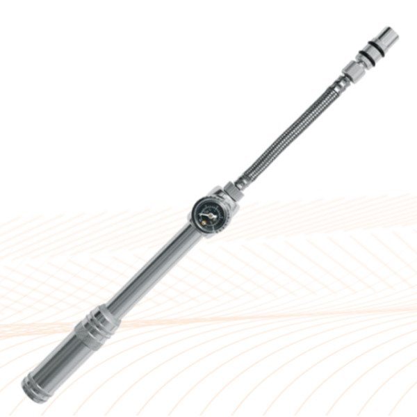 The MSSP (Mountain Suspension Pump) is a must-have in every bike backpack. The flexible steel mesh hose unscrews from the pump cylinder to make it compact. The valve connector is made with a new 2-stage threaded connection, allowing you to screw on and off without losing pressure. A pressure-reducing dial allows you to achieve exactly the desired value.