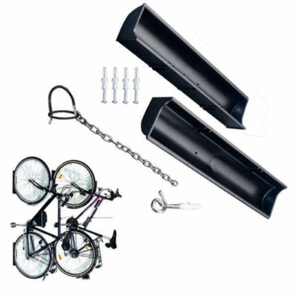 Wall mount for bicycle. Enables space-saving storage for up to three bicycles stacked on top of each other with a ceiling height of 2.10 metres.