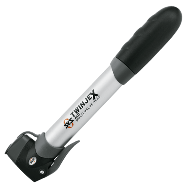 The TWINJEX mini pump fromSKS, made of high quality aluminium, is the ideal companion for cycling trips thanks to its large volume per stroke. The bike pump is not only a winner thanks to its optimum ergonomic handles and rubberised gripping points.