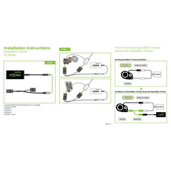„SpeedBox Tracker“ – tai pažangus GPS sekiklis, sukurtas specialiai „Brose“ ir „Specialized“ elektriniams dviračiams (išskyrus SL modelius). Naudodamas daiktų interneto tinklą, šis siųstuvas leidžia tiksliai sekti dviratį realiuoju laiku visoje Europoje (išskyrus Lenkiją).