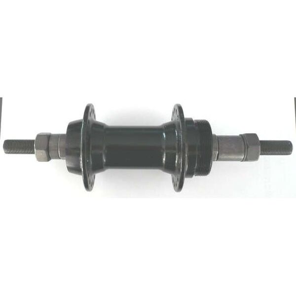 Rear Hub for use with rim brakes, nut mounted, 36 holes for spokes, 8/9 speed screw-in sprocket block, open bearings.